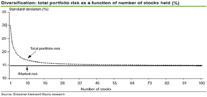 Isso é até instintivo de pensar, você acha mais arriscado uma carteira que tem 10 ações de petroleiras ou uma carteira que tem uma petroleira, uma mineradora, uma empresa de alimentos, um banco, uma empresa de celulose, uma de tecnologia, etc… ?